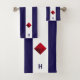 Elégante forme de losange bordeaux nautique et monogramme sur ensemble de serviettes rayées bleu marine et blanc. La forme en diamant est une pyramide vue d'en haut nous suggérant de viser le ciel! Monogramme peut être supprimé ou personnalisé. Sa lettre est synonyme d'harmonie.