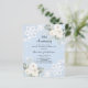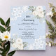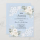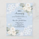 Pour un 60e anniversaire de mariage élégant et romantique. Arrière - plan de couleur bleu clair décoré de fleurs blanches, de roses, de diamants et de dentelle blanche. Personnalisez et ajoutez vos noms et détails. 1 feuille = 1 invite imprimé bord à bord.