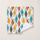 Cet ensemble de serviettes a un design moderne du milieu du siècle de diamants en orange, jaune, turquoise, gris, et dessiné éparpillé sur un champ de blanc.