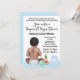 Invitation baby shower couche avec bébé doux garçon avec des jouets sur un mignon arrière - plan point bleu.