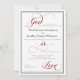 Tel qu'adapté de 1 Jean 4:16, cet élégant écriture rouge gracieux Dieu est Amour faire-part de mariage est un choix idéal pour le mariage chrétien contemporain. Découvrez l'ensemble des options de faire-part de mariage religieuse et d'accessoires au magasin Zazzle, Graphic Suite.