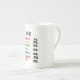 jolie porcelaine, bonne dimension effet brillant bien dans l'ensemble. Le motif et les couleurs sont réussis.Je trouve néanmoins dommage de ne pas occuper tout l'espace avc le motif car la partie rouge au dos de la tasse est trop présente et pas intéressante visuellement.
