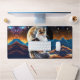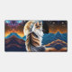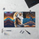 Belle Fluffy Dilute Calico cat désert montagnes ciel étoilé et pleine lune IA Art par minx267