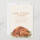 Joignez-vous à nous pour une fête de Thanksgiving festive remplie de gratitude, de délicieux plats et de merveilleuse compagnie! Avec une charmante dinde aquarelle sur un plateau qui suit le fond de notre invitation, nous vous invitation chaleureusement à un rassemblement inoubliable. Intitulée "Parlez de la Turquie à moi", cette occasion spéciale promet des rires, de grandes conversations et des moments chéris. Les détails de la fête sont élégamment présentés au-dessus de la charmante oeuvre d'art.