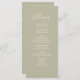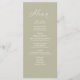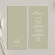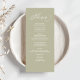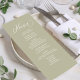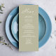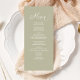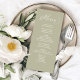 Ce design est composé d'un mariage, carte menu, élégant, calligraphie, script, vert sauge, vert, classique, plat simple, avec un monogramme et un design d'esperluette sur le dos
