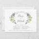 Chic aquarelle fleurie invitation dîner avec vos noms dans élégant script manuscrit, encadré par des lauriers de pivoines blanches et roses avec feuillage botanique luxuriant et verdure. Personnalisez avec vos détails de souper de répétition sous, y compris l'espace pour la répétition de cérémonie et la célébration ou la fête.