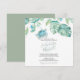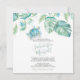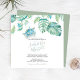 Cette invitation de dîner de répétition carré présente vos noms dans une typographie de script manuscrit élégant avec les détails de l'événement dans une police sérif classique gris charbon sur un fond blanc croquant avec une bordure supérieure de ma tortue de mer aquarelle originale et des feuilles de palmier monstera de verdure tropicale dans des nuances de bleus, de verts et de turquoise. La carte d'invitation se retourne sur une couleur vert sauge tropical complémentaire. Un choix botanique mais élégant pour les mariages décontractés sur la plage et les dîners de répétition côtiers. Pour voir toute ma suite de papeterie de mariage, visitez DoTellABelle sur Zazzle.