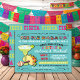Ole, Ole Mañana est le jour du mariage ! Célébrez le dîner de répétition avec l'invitation joyeuse de la Fiesta mexicaine. Comprend une margarita, maraca, taco et une typographie amusante sur un aqua/arrière - plan turquoise truffé de textos. Illustration tirée à la main par McBooboos.