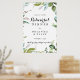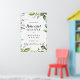 Ce panneau d'accueil pour la répétition de calligraphie verdoyante est parfait pour une simple répétition mariage. Le design est composé de feuilles tropicaux à dominante verte avec une touche de fleurs blanches roses.