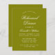 Une simple invitation à dîner de répétition avec une couleur moderne : vert olive. Il n'a que du texte blanc sur arrière - plan vert olive. Les mots "Dîner de répétition" et le nom sont écrits dans un élégant script calligraphique.