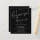 Un prix économique PETIT 4,5 po x 5,6 po alternatif. Disponible dans un STOCK SEMI-GLOSS 110 lb CARD qui est l'option par défaut (plus épais pour les invitations), OU un STOCK SATIN FINISH 80 lb THINNER PAPER (idéal pour les boîtiers). Les enveloppes sont en option et légèrement plus grandes que la taille de la carte. Ce design moderne dans un design classique noir et blanc a un élégant script d'ensemble informel pour le dîner de répétition et le reste de la typographie que vous pouvez facilement personnaliser. Vous pouvez également modifier les couleurs du texte et de l'arrière - plan de chaque côté si vous le souhaitez via l'option Customiser plus.