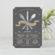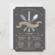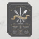 Cette invitation à dîner de répétition comporte une fourchette, un couteau et une cuillère formels avec une bannière dorée au champagne. L'arrière - plan Chalkboard donne à cette invitation de dîner une atmosphère décontractée rustique mais toujours élégante. Customisez avec votre propre texte. Illustration originale par pj_design. Contactez-moi si vous avez besoin d'aide.