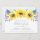 L'invitation à dîner à la répétition country chic et florale comporte une bordure supérieure de tournesols aquarelle, de minuscules bourgeons bleu marine et un feuillage vert. Personnalisez avec votre cérémonie répétition et dîner ou détails de la célébration dans un texte écrit à la main moderne et des lettres serif traditionnelles. Les invitations à dîner de répétition rustique renversent vers le bleu du port riche.
