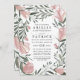 Dîner de répétition Floral Greenery Invitations - présente une aquarelle design de fleurs roses rousses et de verdure. Ce design comprend également des polices modernes et élégantes pour la mise en page du texte.