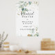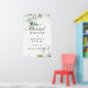 Ce panneau d'accueil pour la répétition d'eucalyptus doré est parfait pour une répétition mariage rustique. Ce design artistique présente une aquarelle dessinée à la main, de l'or et du feuillage vert, une beauté naturelle inspirante.