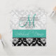 Dîner de répétition Invitation Damask Monogram Turquoise.com et WhiteWhimsicalWeddings.blogspot.com. Customisez avec votre monogramme, vos noms et vos informations d'invitation. Choisissez également parmi une variété de polices et de beaux papiers pour rendre vos invitations FABULEUSES! Design par Elke Clarke ©2011. Graphiques sous licence pour une utilisation commerciale