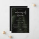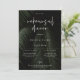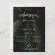 Moody Tropics, invitation à la répétition. Photographie en feuille de palmier tropical foncé arrière - plan avec typographie blanche pointue. L'emballage de la carte comporte une couleur noire de coordination solide.