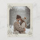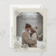 Invitation votre famille et vos amis proches à une célébration intime après vos voeux privés ou mariage de l'hôtel de ville. Envoyer des cartes postales de vacances et en même temps les invitations à un dîner mariage confortable. Cette carte postale de vacances personnalisable avec un design enneigé romantique décoré de délicats flocons de neige et la douce phrase "Forever commence cet hiver." Ajoutez votre photo préférée et personnalisez-la avec des noms, des dates ou un message sincère. Parfait pour les couples qui souhaitent un petit mariage intime cet hiver.