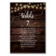 Dîner mariage Table d'hôtes Carte de tableau, Script rustique moderne, lumières à cordes, arrière - plan en bois foncé Customiser le texte et / ou retirer et remplir avec votre mariage thème.