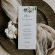 Cette carte de menu moderne à la branche d'olivier est parfaite pour un mariage boho. Le design rustique et élégant présente des feuilles botaniques et des olives noires d'aquarelle simple sur une petite branche à l'atmosphère méditerranéenne classique. Ce menu peut être utilisé pour une réception de mariage, un dîner de répétition ou tout événement.
