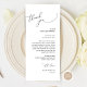 Appréciez la touche de finition parfaite de votre réception de mariage - nos élégantes cartes de Merci Mariage romantique, avec le titre de carte "Merci" ! Conçues pour express votre appréciation sincère de la présence de chaque invité lors de votre journée spéciale, ces cartes sont le moyen idéal d'ajouter une touche personnelle à vos tables de dîner. Ces cartes de réglage de place sont faciles à utiliser - il suffit d'en placer une sur chaque carte de dîner pour créer une belle et réfléchie présentation. Non seulement ils feront apprécier vos invités, mais ils ajouteront également une touche de sophistication à votre réception. Que vous planifiez un rassemblement intime ou une grande fête, nos Cartes de Parcours Mariages Merci sont le moyen parfait pour express votre gratitude et faire sentir votre chéri à vos invités. Commandez le vôtre aujourd'hui et ajoutez une touche spéciale à votre bonheur toujours après le dîner! Conçu par TeeshaDerrick.