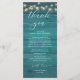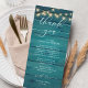 Ajoutez une touche personnelle et attentionnée à votre célébration mariage avec ce décor de dîner mariage romantique moderne et rustique. Conçu pour être placé sur le siège de chaque client, cet élégant papier à lettres mariage vous aide à vous exprimer votre gratitude express et crée une atmosphère chaleureuse et accueillante. Avec son élégant style rustique minimaliste et minimaliste, ses lampes à cordes bleu turquoise, il est parfait pour agrémenter votre dîner mariage, la réception ou le dîner de répétition. Customisez avec vos noms, votre date de mariage ou un message spécial pour en faire le vôtre.