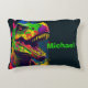 Dino T Rex Cute Kids Accent Coussin T Rex Dinosaur dans différentes nuances de rouge profond, bleu, jaune, vert terre. Idéal pour les garçons ou n'importe quel enfant. Archeology Lover. Animal Evolution qui sont Extincts dans un Art Rétro Pop Style design Jussica, Era Préhistorique, et Reptile.