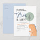 Une mignonne invitation de carte postale d'anniversaire avec un dinosaure dessiné à la main tenant un ballon. À l'intérieur du ballon, il y a l'âge du garçon d'anniversaire. Le texte invitation est pivoté et aligné à gauche pour une mise en page amusante. Le haut de l'invitation dit : "Timbre, chompe & rugissement. Faisons la fête comme un dinosaure !". Ci-dessous, le nom de votre petit est écrit dans une police de style écriture. Les informations de la partie sont écrites en bas avec un espace supplémentaire pour un message personnalisé. Les cartes s'inversent à une simple mise en page de carte postale contre un arrière - plan bleu clair. La palette de couleurs de ce design est bleu, orange et vert. Parfait pour tout enfant d'âge ! Des invitations d'anniversaire colorées sur le thème des dinosaures pour le budget. Une version d'invitation standard de ce design est disponible dans mon magasin. Veuillez noter que, comme il s'agit de la version d'invitation par carte postale, elle n'est pas fournie avec des enveloppes. N'hésitez pas à m'envoyer un message pour toute question - Je serai heureux de vous aider !