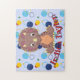 Joli puzzle Dinosaur pour les enfants avec un motif arrière - plan cercles. Personnalisez avec son nom pour en faire un cadeau amusant pour n'importe quel enfant !