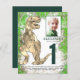 Pour le garçon qui en tourne un et qui aime les dinosaures préhistoriques. Ce Roaring T Rex invitations Dino fans à une amusante fête de 1er anniversaire. Personnalisez cette invitation de premier anniversaire marron et vert de la jungle jurassique avec une photo du garçon d'anniversaire, le numéro de l'anniversaire et les détails de la fête et vous êtes tous prêts pour un anniversaire de dinosaure amusant bondée thème dino anniversaire. Toutes les espèces de dinosaures sont les bienvenues. Belle oeuvre originale unique de l'artiste Catherine Sweetman