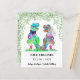 Dégustez vos invités avec cette drôle de dinosaure thème mariage T Rex marié et marié avec feuillage bois sauvez la date. Facile à customiser avec les noms des mariés et des mariés et la date du mariage. Aquarelle colorée T Rex mariée et illustrations de mariés avec typographie moderne. Oeuvre originale unique de l'artiste Catherine Sweetman