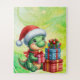 Un beau cadeau de Noël pour un enfant de 5 à 7 ans. Dinosaur Cute Green Puzzle de Noël pour enfants est un puzzle de 56 pc. fait d'un arrière - plan vert vif et d'un petit dinosaure de bébé dans les vêtements de Noël. Ce puzzle peut être commandé une taille plus petite et plus grande que vous le souhaitez.