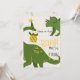 Featuring a vibrant "Stomp on Over" theme with friendly triceratops and brontosaurus illustrations, this card celebrates the unique bond of twins turning four. The front is playful and modern, while the back features a coordinating all-over dinosaur footprint print for a professional, high-end finish.