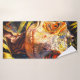 Cette serviette de bain a un dinosaure dessus.