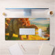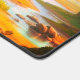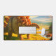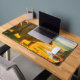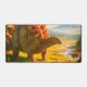 Ce tapis de bureau a un dinosaure dessus.