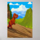 Dinosaure courant sur une colline avec une colline verte et le ciel bleu avec nuage blanc dans l'arrière - plan. C'est un art généré par l'IA.