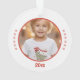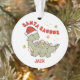 Joli ornement de Noël avec le dinosaure de Noël Santasaurus enveloppant dans les lumières de Noël avec chapeau de Père Noël et votre photo dans l'autre côté. Personnaliser facilement le texte et la photo - Kate Eden Art