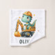 Ce design personnalisé et charmant de serviettes d'aquarelle dispose d'un dinosaure ludique fonctionnant avec une pelle jaune vif. Ajoutez le nom de votre petit pour une touche unique et aventureuse. Parfait pour les amateurs de dino qui aiment les grandes aventures, et le jeu de construction.