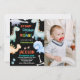 Dinosaure orange noir Invitations d'anniversaire avec photo