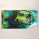 Cette serviette de bain a un dinosaure représenté dessus.