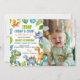Créez une invitation personnalisée et adorable pour l'anniversaire de bébé dinosaure avec ce modèle personnalisable. Avec de jolies illustrations de dinosaures et un espace pour la photo de votre enfant, cette invitation est parfaite pour toute famille amoureuse de dinosaures. Ajoutez facilement les détails de la fête et envoyez-les à vos invités pour un bon moment.