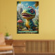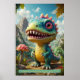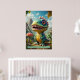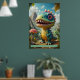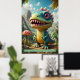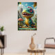 Dinosaure capricieux et vibrant qui semble être un mélange d'imaginaire et de charme préhistorique. Le dinosaure a un long cou et une grande tête, avec une expression aux yeux larges, avec des yeux surdimensionnés et captivants qui lui donnent un look mignon et curieux. Sa peau est ornée de motifs complexes ressemblant à des formes et des points colorés et tourbillonnants, comme si son corps était peint d'un kaléidoscope de textures dans les bleus, les verts, les jaunes et les violets. L'arrière - plan vibrant, avec ses cieux tourbillonnants et ses planètes abstraites, donne l'impression d'un paysage autrement mondain, suggérant que le dinosaure réside dans un monde surréaliste et fantastique. Les couleurs vives et exagérées et les traits ludiques confèrent à la créature un caractère convivial et animé, idéal pour un cadre magique ou onirique. Ce dinosaure pourrait appartenir à une espèce imaginaire d'un royaume cosmique, où la flore et la faune prospèrent dans des écosystèmes psychédéliques dynamiques, mêlant vie préhistorique et rebondissements spatiaux. Son comportement exsude l’innocence et de l’émerveillement, comme s’il explorait pour la première fois son univers fantastique.
