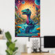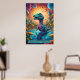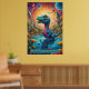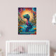 Dinosaure capricieux et vibrant qui semble être un mélange d'imaginaire et de charme préhistorique. Le dinosaure a un long cou et une grande tête, avec une expression aux yeux larges, avec des yeux surdimensionnés et captivants qui lui donnent un look mignon et curieux. Sa peau est ornée de motifs complexes ressemblant à des formes et des points colorés et tourbillonnants, comme si son corps était peint d'un kaléidoscope de textures dans les bleus, les verts, les jaunes et les violets. L'arrière - plan vibrant, avec ses cieux tourbillonnants et ses planètes abstraites, donne l'impression d'un paysage autrement mondain, suggérant que le dinosaure réside dans un monde surréaliste et fantastique. Les couleurs vives et exagérées et les traits ludiques confèrent à la créature un caractère convivial et animé, idéal pour un cadre magique ou onirique. Ce dinosaure pourrait appartenir à une espèce imaginaire d'un royaume cosmique, où la flore et la faune prospèrent dans des écosystèmes psychédéliques dynamiques, mêlant vie préhistorique et rebondissements spatiaux. Son comportement exsude l’innocence et de l’émerveillement, comme s’il explorait pour la première fois son univers fantastique.