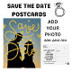 Mariage photo de papier moderne enregistrer la date des cartes postales. Avec la photo de votre couple préféré et la grande calligraphie 'Save our Date' dans un style manuscrit, en or réel avec des petits coeurs. Customisez avec vos détails.