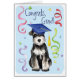 Félicitez votre diplômé favori avec un cadeau avec un mignon petit diplômé de la Miniature Schnauzer portant un mortier au milieu d'une flûte de confettis.