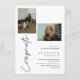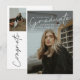 Cette invitation de diplôme photo élégante et moderne comprend un overlay de diplômé en écriture cursive et un nom, une école et une photo personnalisables sur le devant. Le verso propose des félicitations et des détails sur l'événement avec 2 photos supplémentaires. Un excellent moyen de mettre en valeur votre diplômé.