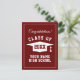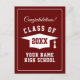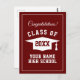 Cartes postales rouge bordeaux pour la fête de diplômé du lycée. Cartes de félicitations pour la remise des diplômes du lycée de la promotion 2025. Cartes élégantes rouges et blanches pour les étudiants diplômés, les diplômés de l'université, les seniors, etc. Logo de toque à pompon avec année et nom personnalisés. Changer en n'importe quelle combinaison de couleurs.