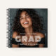 Le livre d'or de la graduation avec le nom du diplômé et l'année au-dessus et au-dessous du texte "grad" dans une police moderne et amusante comme une couverture blanche sur votre photo personnalisée.