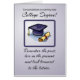 Obtenir un diplôme universitaire est un moment très spécial. Cette carte bleu gris montre un bouchon de diplôme et un diplôme. Un message inspirant remplit l'avant. Une carte parfaite pour féliciter un homme ou une femme pour leur diplôme universitaire.