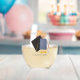 Pour votre diplômé, l'amateur de vin, ce verre de vin sans tige a un thème de graduation, sur le devant. Au-dessus de l'image, une zone pour l'université ou le collège, et en bas une zone pour l'année. À l'arrière, il y a une zone pour ajouter un message personnel ou vous pouvez le laisser vide.